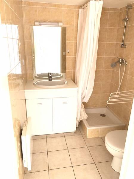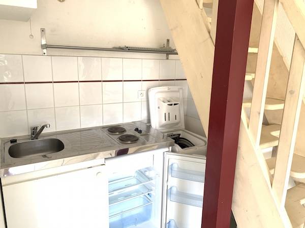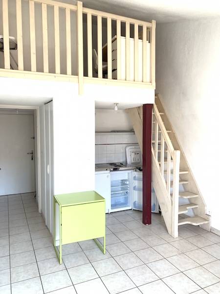 Il est bien agencé et dispose d'une entrée avec placard, d'une salle d'eau fonctionnelle avec WC, d'un séjour très lumineux avec coin cuisine équipée, et une mezzanine aménagée en chambre.