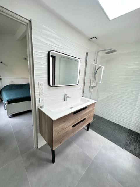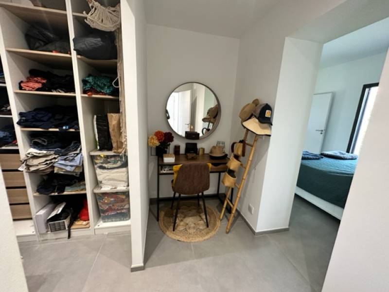 Parmi les nombreuses prestations qu'offre cette maison : chauffe eau thermodynamique; pompe à chaleur; éclairages à led; fenêtres et porte d'entrée en alu avec détecteurs d'alarme intégrés; baies à galandage pour le séjour et la cuisine; fenêtres avec ouverture oscillo-battant; alarme avec sirène intérieure et extérieure.; volets roulants électriques avec application; poêle à bois; sèches serviettes et soufflants intégrés...