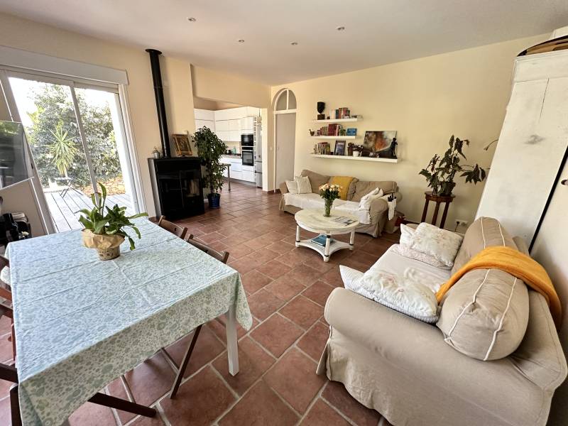 - Séjour Lumineux : Le séjour bénéficie d’une abondance de lumière naturelle et est équipé d’un poêle à granules. Il s’ouvre sur une cuisine moderne et fonctionnelle.